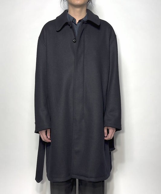 カシミヤ混 ストレッチニット メルトン × ウールナイロン W クロス ヴィンテージタンブラー ステンカラーコート - Navy